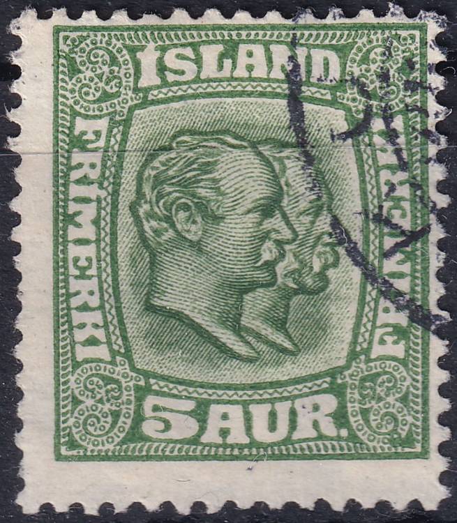 1915/1918, Island, 0079, Výplatní známka: Král Kristián IX. a Frederik VIII. ⊙