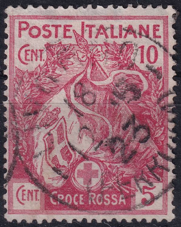 1915, Itálie, 0120, Červený kříž: Italská vlajka se savojským znakem ⊙