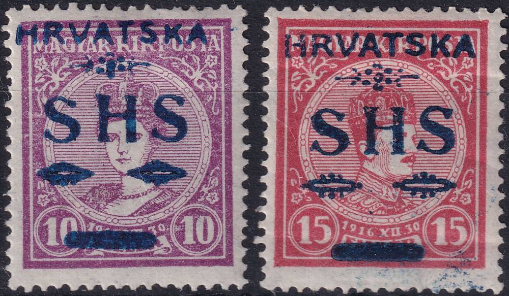 1918, Jugoslávie (vydání pro Chorvatsko), 0064/0065, Známky Maďarska s přetiskem: Na korunovačních známkách 1916 ✶