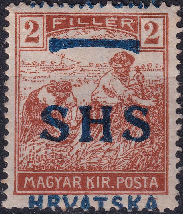 1918, Jugoslávie (vydání pro Chorvatsko), 0066, Známky Maďarska s přetiskem: Na kresbě Ženci 1916/18 (barevná číslice) ✶