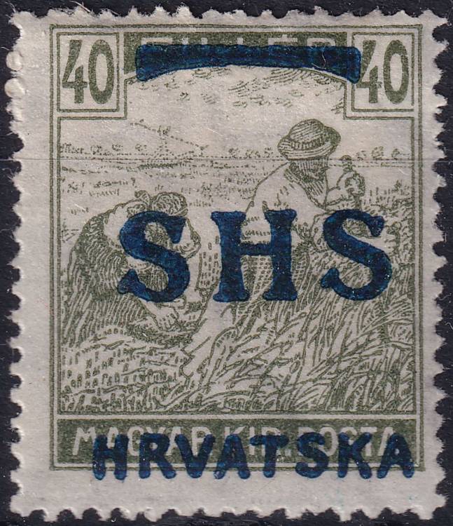 1918, Jugoslávie (vydání pro Chorvatsko), 0075, Známky Maďarska s přetiskem: Na kresbě Ženci 1916/18 (barevná číslice) ✶