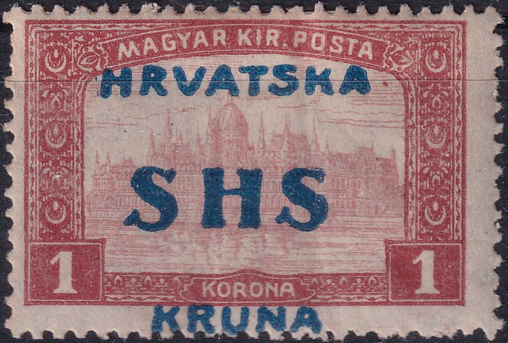 1918, Jugoslávie (vydání pro Chorvatsko), 0079, Známky Maďarska s přetiskem: Na kresbě Parlament 1917/20 ✶