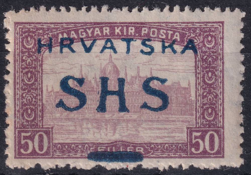 1918, Jugoslávie (vydání pro Chorvatsko), 0076, Známky Maďarska s přetiskem: Na kresbě Parlament 1917/20 ✶