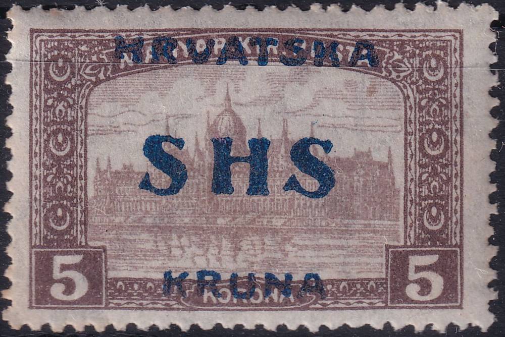 1918, Jugoslávie (vydání pro Chorvatsko), 0082, Známky Maďarska s přetiskem: Na kresbě Parlament 1917/20 ✶✶