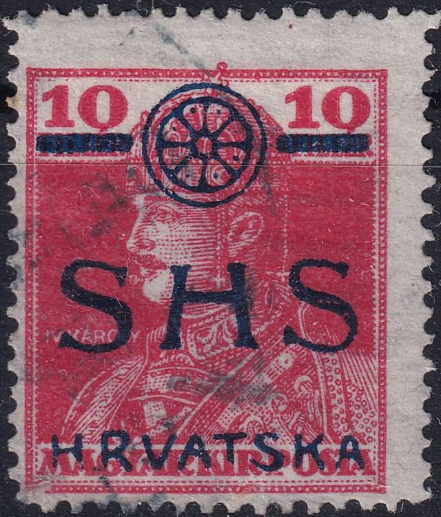 1918, Jugoslávie (vydání pro Chorvatsko), 0084, Známky Maďarska s přetiskem: Na vydání "Karel a Zita" 1918 - Karel ⊙