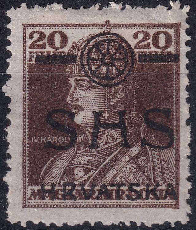 1918, Jugoslávie (vydání pro Chorvatsko), 0085, Známky Maďarska s přetiskem: Na vydání "Karel a Zita" 1918 - Karel ✶