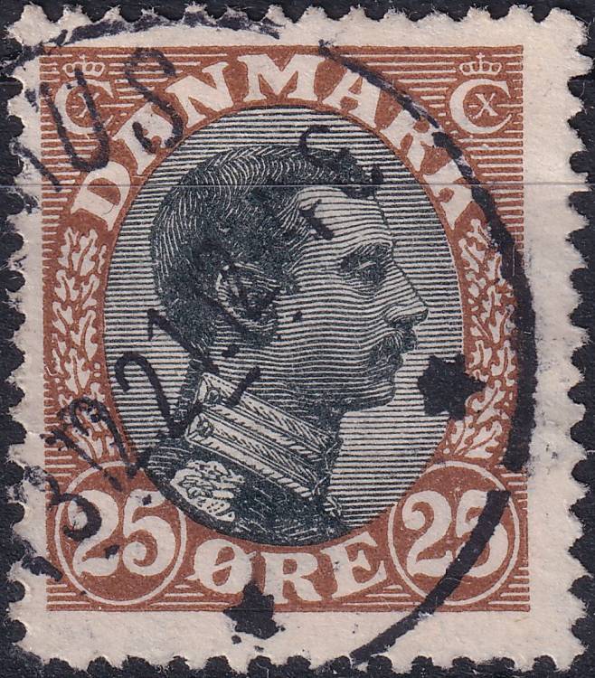 1919, Dánsko, 0100, Výplatní známka: Král Kristián X. ⊙