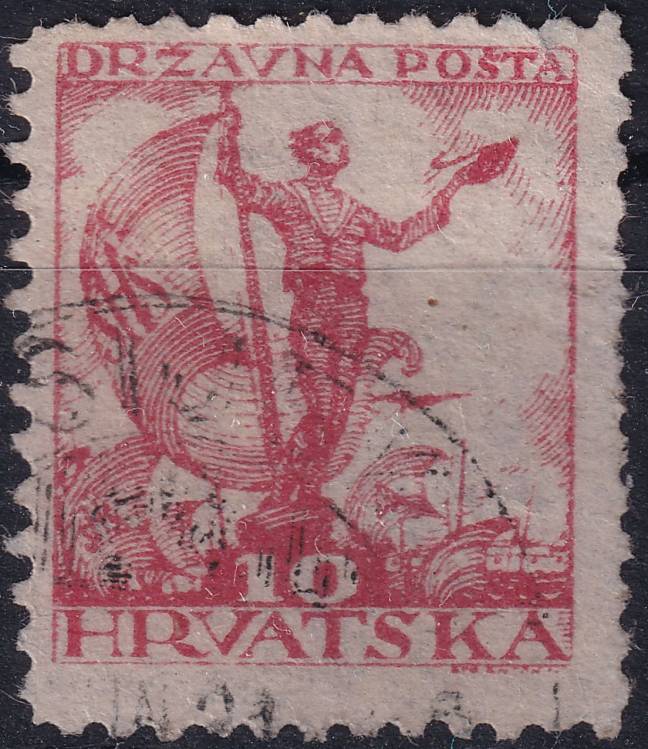 1919, Jugoslávie (vydání pro Chorvatsko), 0091A, Výplatní známka: Námořník s vlajkou a sokolem ⊙