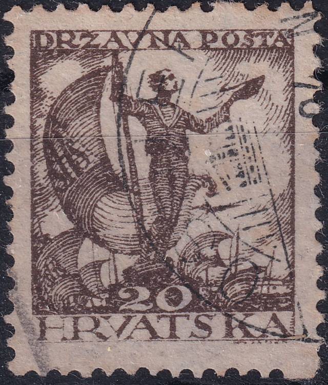 1919, Jugoslávie (vydání pro Chorvatsko), 0092B, Výplatní známka: Námořník s vlajkou a sokolem ⊙