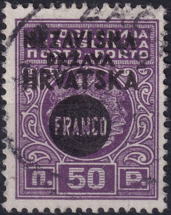1941, Chorvatský stát, 043, Jugoslávská doplatní známka s přetiskem ⊙