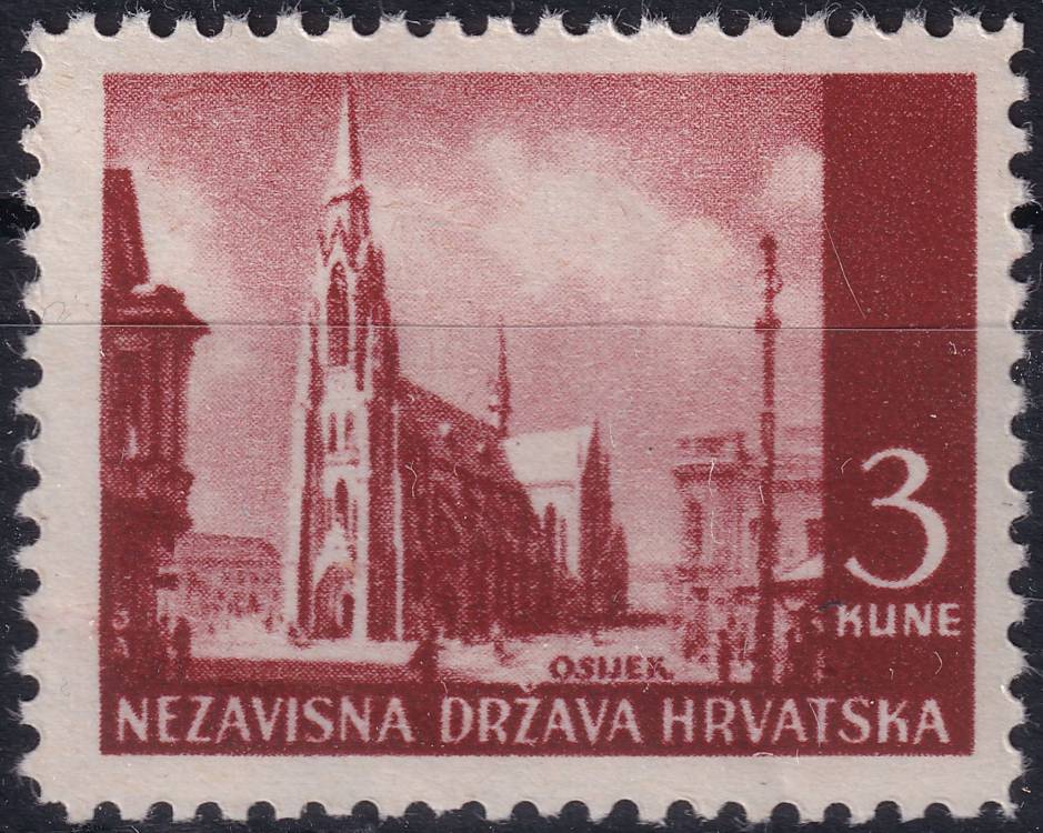 1942, Chorvatský stát, 053, Výplatní známka: Krajinky - Kostel v Osijeku ✶✶