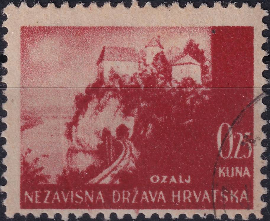 1941, Chorvatský stát, 047, Výplatní známka: Krajinky - Hrad Ozalj u Karlovace ⊙