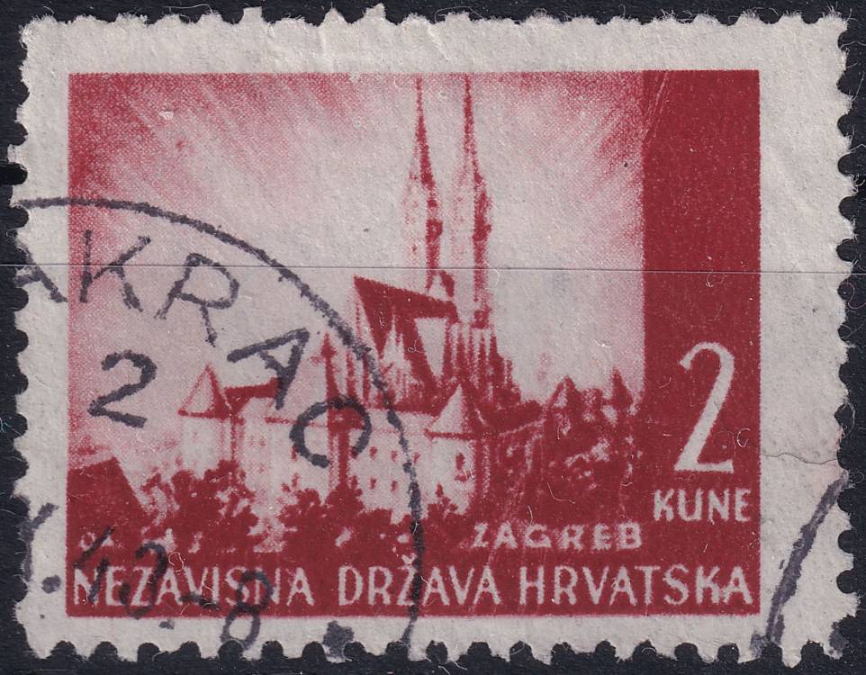 1941, Chorvatský stát, 052, Výplatní známka: Krajinky - Katedrála v Záhřebu ⊙