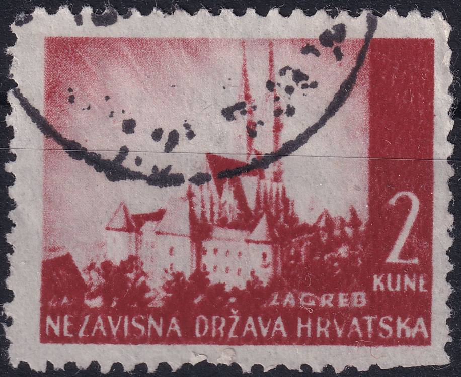 1941, Chorvatský stát, 052, Výplatní známka: Krajinky - Katedrála v Záhřebu ⊙