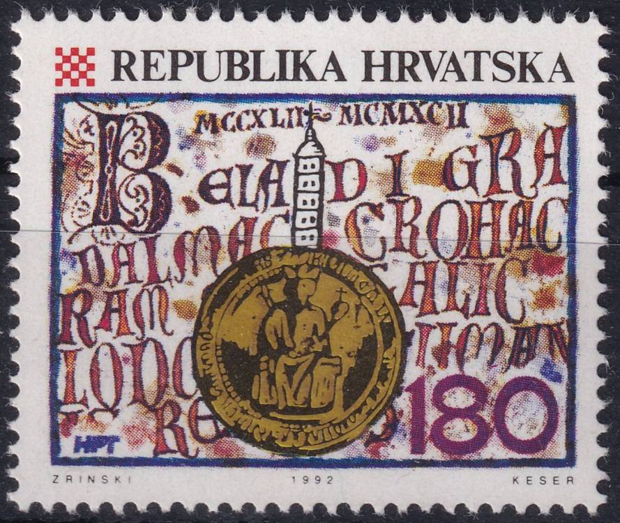 1992, Chorvatsko, 0217, 750 let městských privilegií pro Záhřeb ✶✶