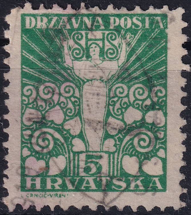 1919, Jugoslávie (vydání pro Chorvatsko), 0090A, Výplatní známka: Anděl míru ⊙
