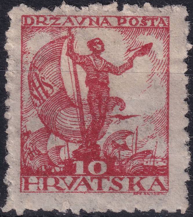 1919, Jugoslávie (vydání pro Chorvatsko), 0091A, Výplatní známka: Námořník s vlajkou a sokolem ✶