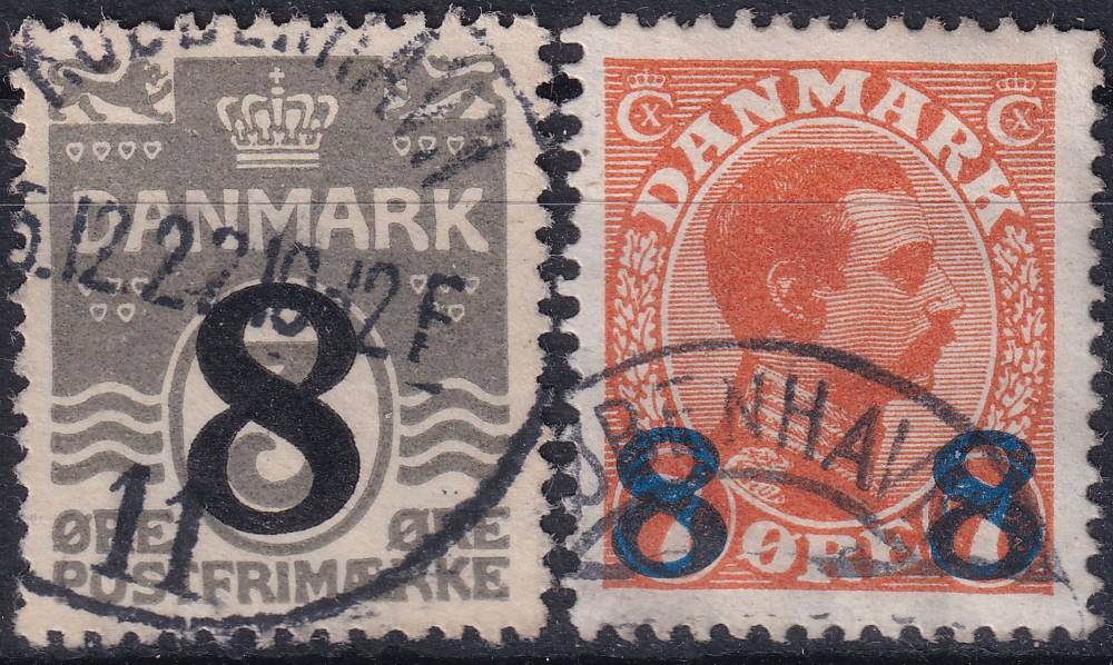1921/1922, Dánsko, 0129/0130, Výplatní známky: Vlnky, s 18 srdíčky; Král Kristián X. ⊙