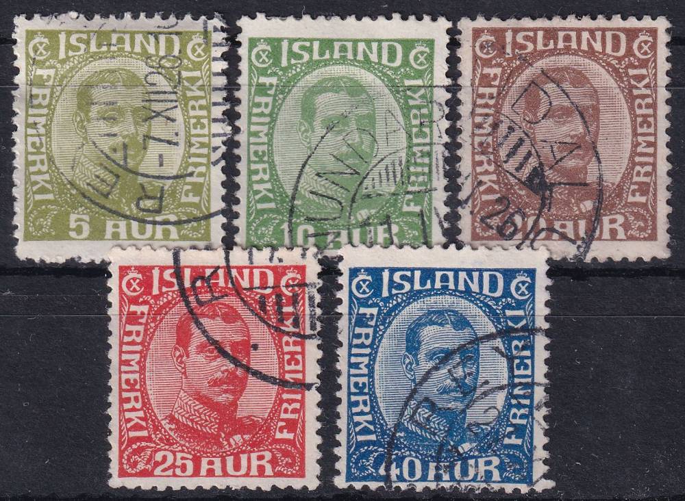1921/1922, Island, 0099/0103, Výplatní známka: Král Kristián X. ⊙