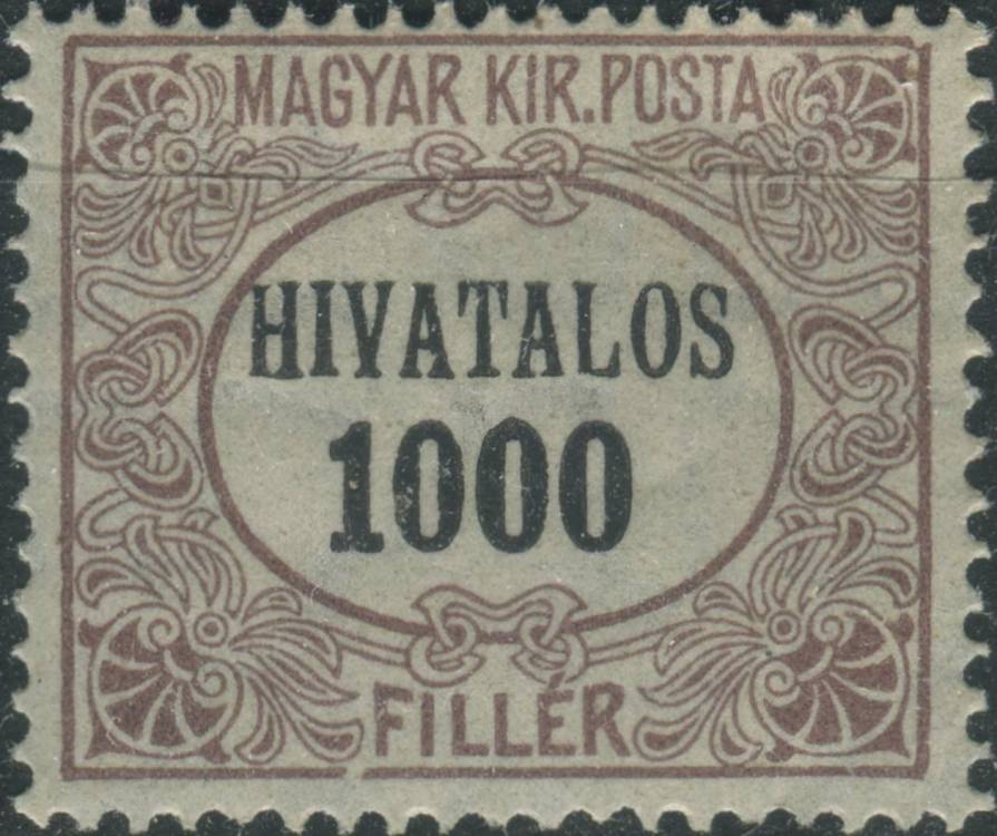 1921, Maďarsko, SL08, Služební známka: Secesní rám ∗∗