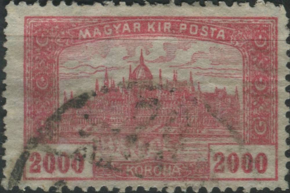 1924, Maďarsko, 0368, Výplatní známka: Budova parlamentu (nápis MAGYAR KIR. POSTA) ⊙