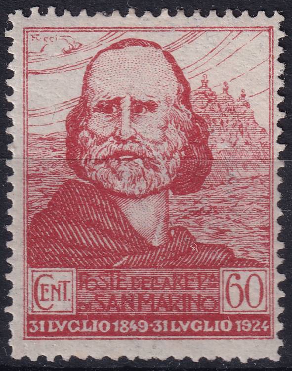 1924, San Marino, 0102, 75. výročí útěku Garibaldiho do San Marina: Giuseppe Garibaldi ✶✶
