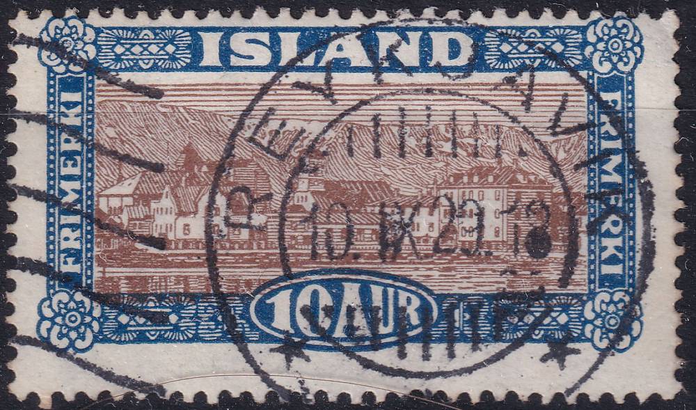 1925, Island, 0115, Výplatní známka: Pohledy na Island - Pohled na město Rejkjavík ⊙