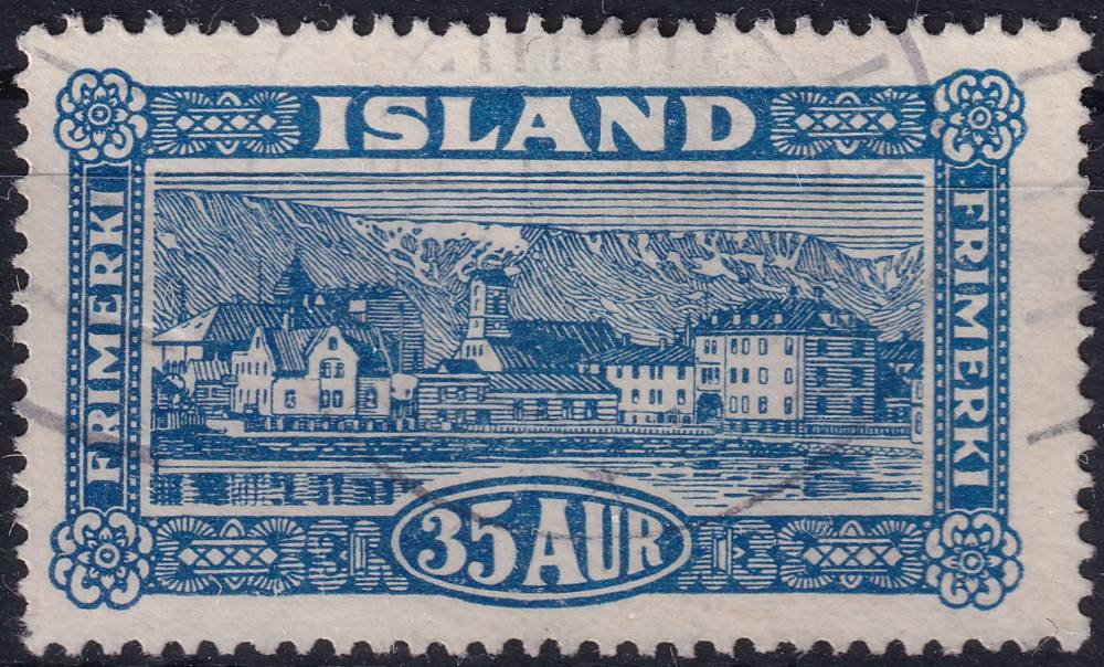 1925, Island, 0117, Výplatní známka: Pohledy na Island - Pohled na město Rejkjavík ⊙