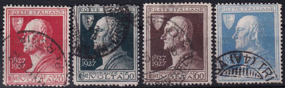 1927, Itálie, 0259/0262, 100. výročí úmrtí Alessandra Volty ⊙