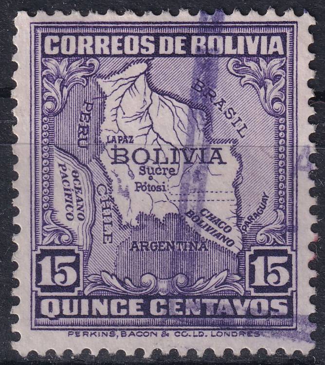 1930, Bolívie, 0205I, Výplatní známka: Mapa Bolívie ⊙