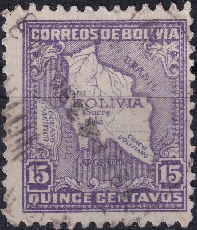 1935, Bolívie, 0236, Výplatní známka: Mapa ⊙