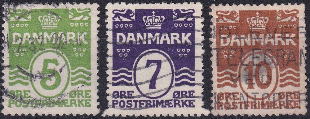 1930, Dánsko, 0182/0184, Výplatní známky: Vlnky, s 18 srdičky ⊙