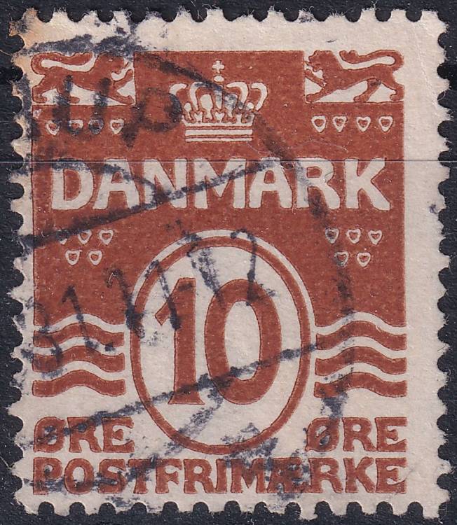1930, Dánsko, 0184VV, Výplatní známka: Vlnky, s 18 srdičky ⊙