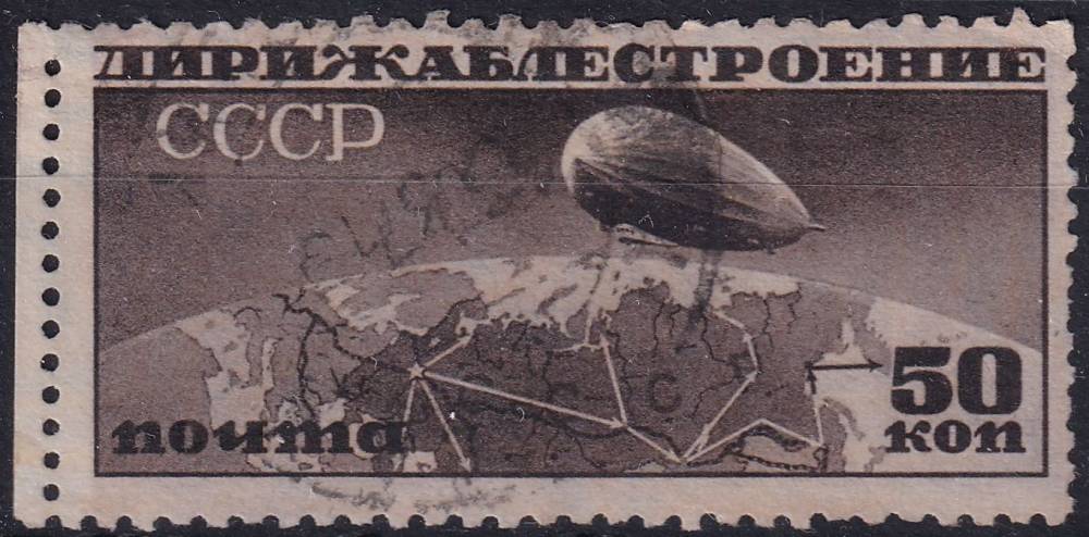 1931, SSSR, 0400Ba, Výstavba vzducholodí: Vzducholoď nad globusem, SSSR s leteckými trasami ⊙