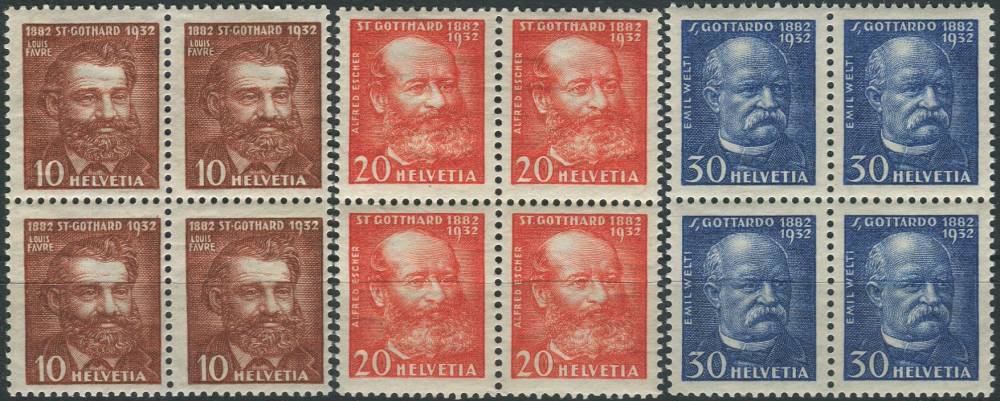 1932, Švýcarsko, 0259/0261, 50 let železnice St. Gothard ∗∗ ⊞