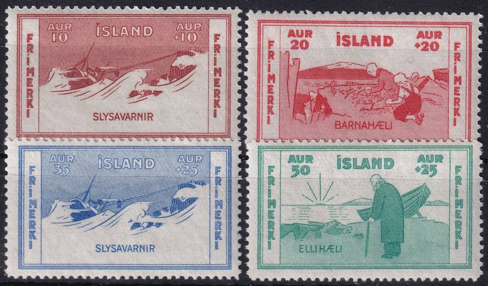 1933, Island, 0168/0171, Příplatkové známky: Dobročinná společnost ✶✶
