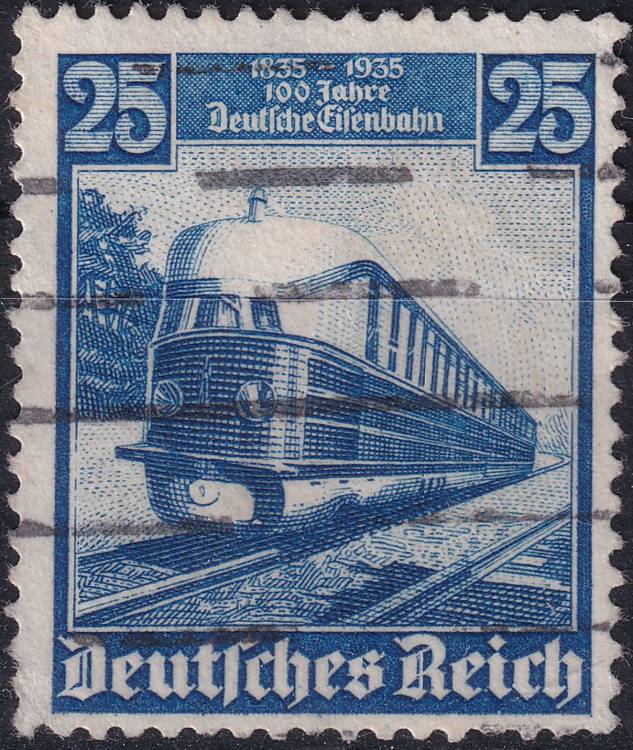 1935, Deutsches Reich, 0582, 100 let německé železnice: "Létající Hamburčan", dálkový železniční vůz série VT 04 ⊙