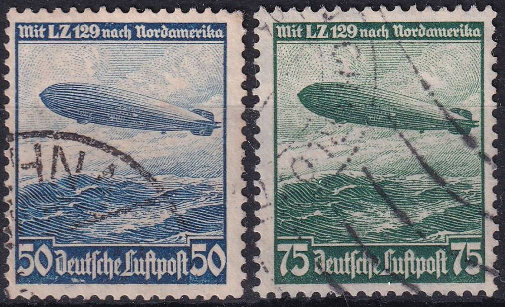1936, Deutsches Reich, 0606/0607X, Letecké poštovní známky: cesty vzducholodí Hindenburg L. Z. ⊙