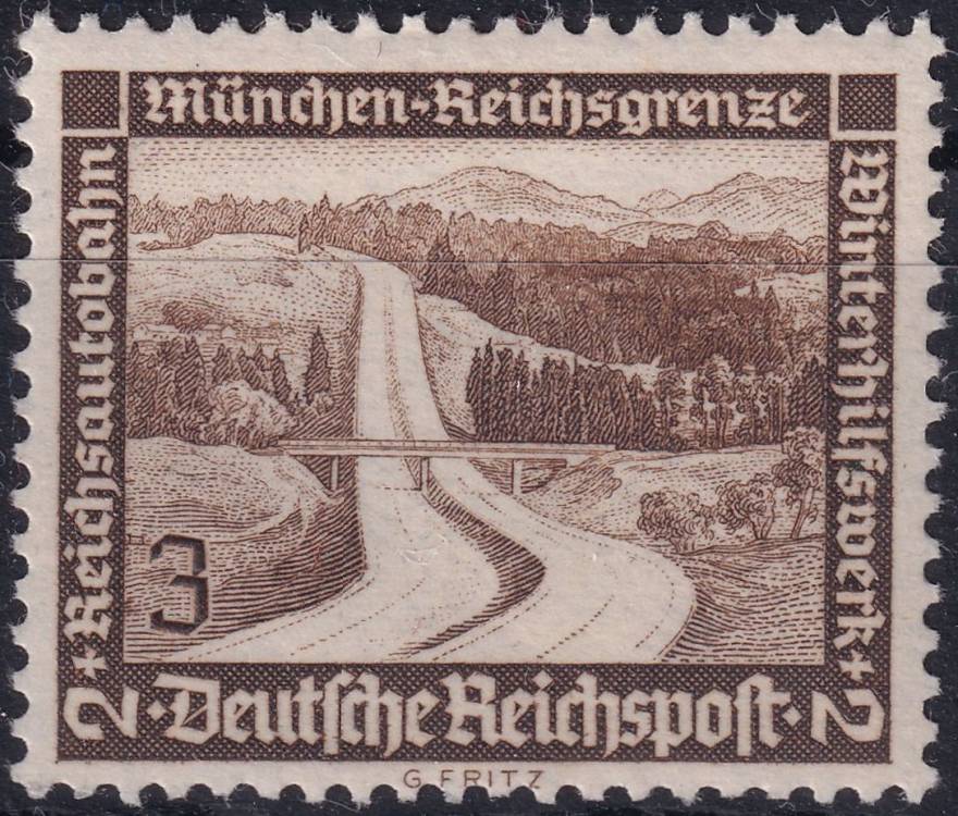 1936, Deutsches Reich, 0634, Zimní pomoc: Moderní stavby - říšská dálnie Mnichov-říšská hranice ✶