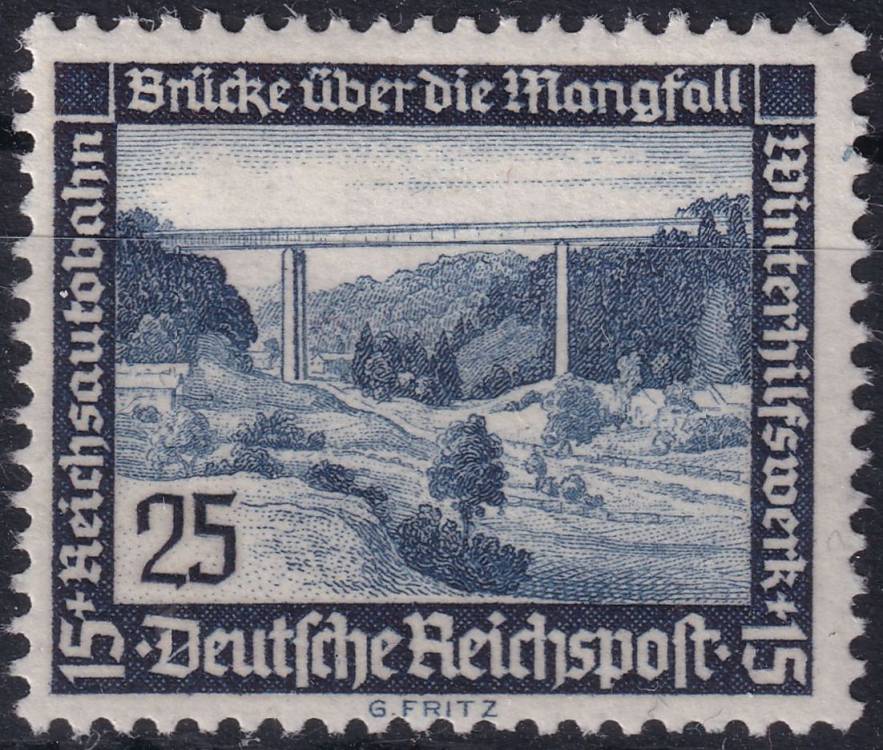 1936, Deutsches Reich, 0641y, Zimní pomoc: Moderní stavby - dálniční most Mangfall ✶