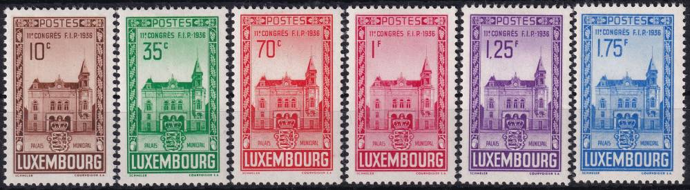 1936, Lucembursko, 0290/0295, 11. kongres Mezinárodní filatelistické federace (FIP), Filatelistický týden v Lucembursku a výstava ✶
