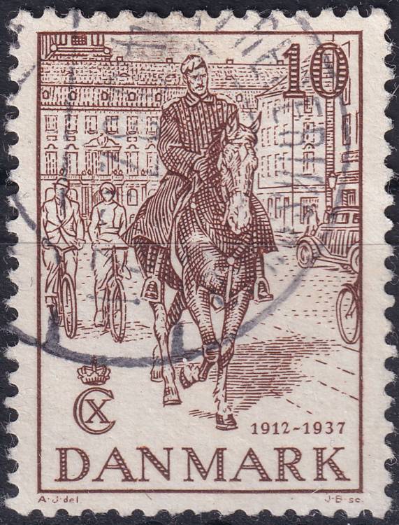 1937, Dánsko, 0238, 25 let vlády krále Kristiána X.: Král Kristián X. na koni ⊙