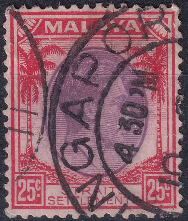 1937, Malajsko - Průlivové osady, 221, Výplatní známka: Král Jiří VI. ⊙