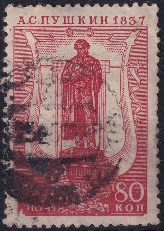 1937, SSSR, 0553Hy, 100. výročí úmrtí Alexandra Sergejeviče Puškina: Puškinův pomník od Alexandra Opekušina ⊙