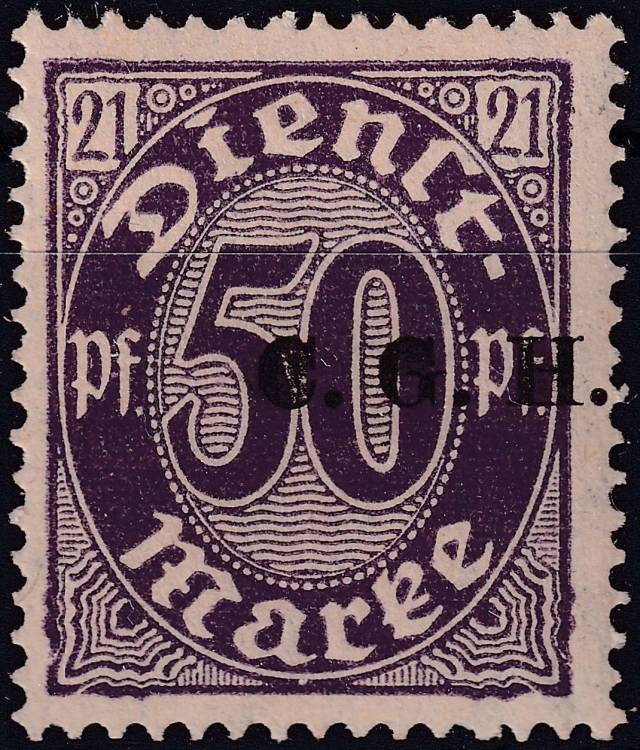 • přetisk C. G. H. S. na služební známce Německé říše MiNr. 21