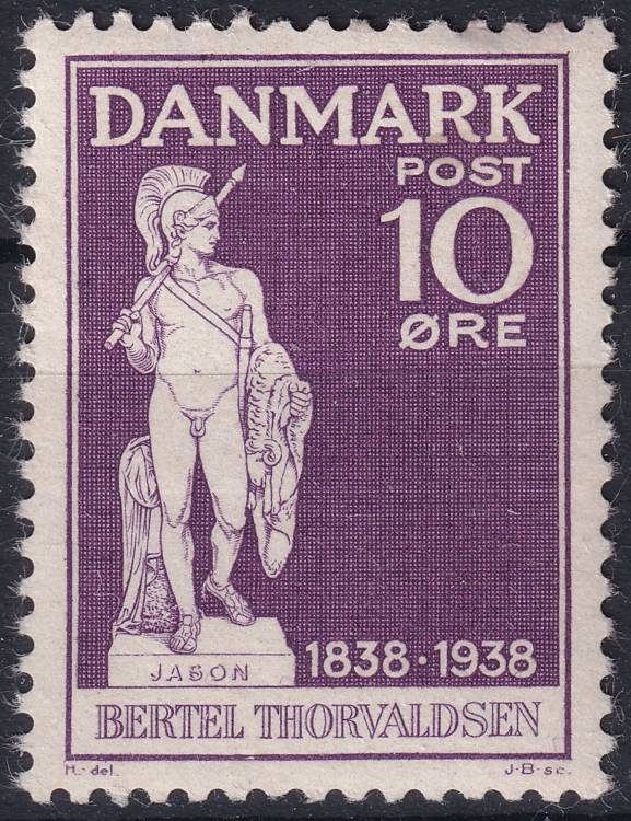 1938, Dánsko, 0248, 100. výročí návratu Bartela Thorvaldsena do Kodaně: Socha Jásona ✶✶
