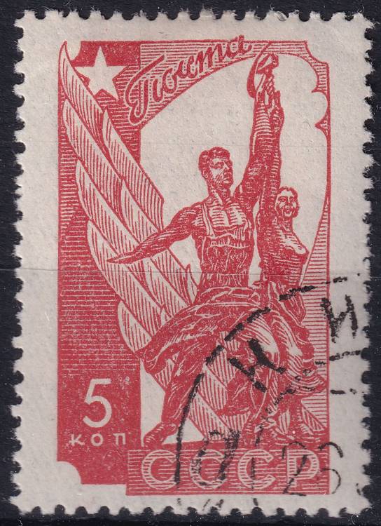 1938, SSSR, 0581Ix, Účast na Světové výstavě 1937 v Paříži: Dělník a kolchoznice od Věry Muchiny ⊙