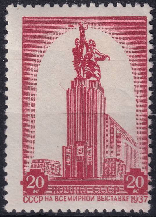 1938, SSSR, 0582, Účast na Světové výstavě v Paříži: Sovětský pavilon od Borise Iofana ✶