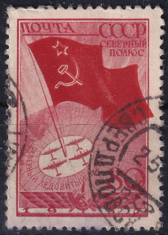 1938, SSSR, 0587za, Letecké známka: Letecký transport polární expedice k výzkumné stanici "Severní pól 1" na Rudolfův ostrov (1937) - Mapa SSSR a Severní pól ⊙
