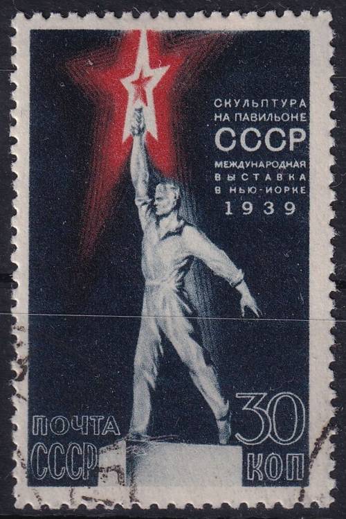 1939, SSSR, 0693Av, Světová výstava, New York - Dělník s hvězdou, socha od V. Andrejeva ⊙